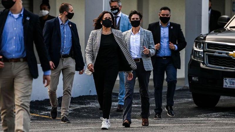 Her favouring of the pantsuit aside, Harris has also showcased a number of more casual looks, including Converse sneakers, one pair of hers adorned with a number of buttons brandishing statements including ‘Black joy’ and ‘stop hate’, and black skinny jeans paired with ankle boots, her laid-back moments reflective of her democratic background.