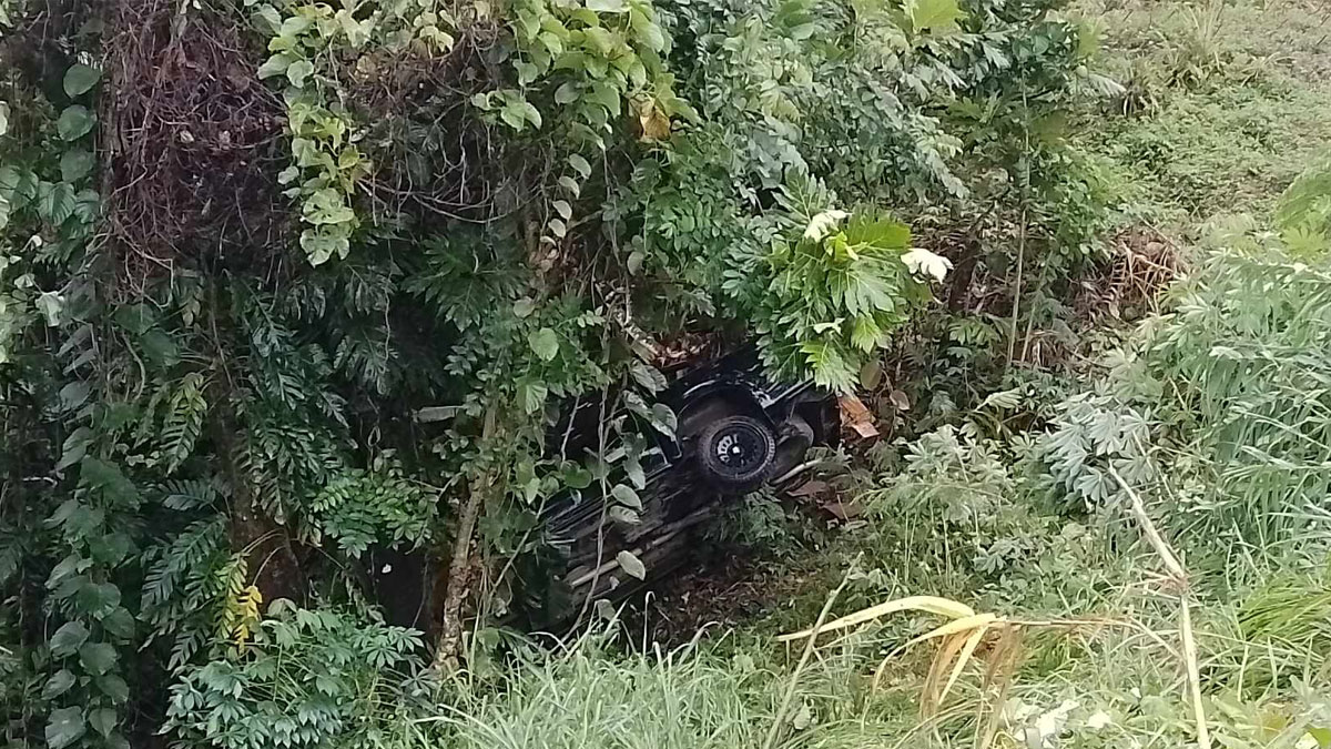 Three people escaped injury after the Toyota Hilux they were travelling in went down a hill at the Mango Bay junction at about midday today.
