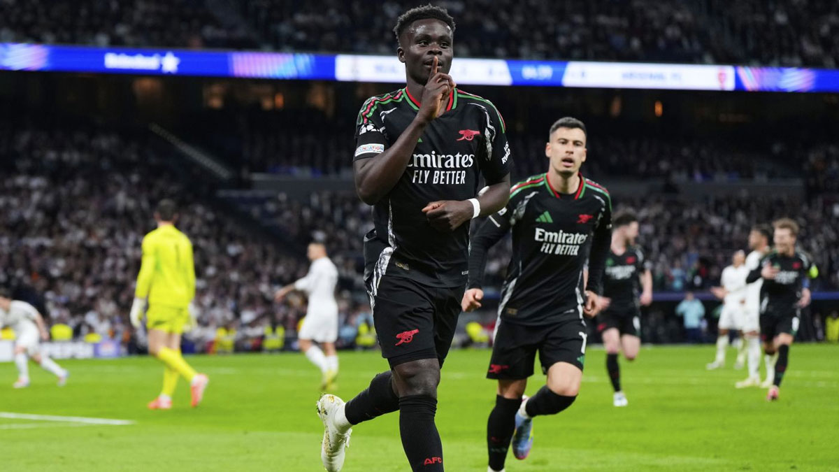 Bukayo Saka and Gabriel Martinelli scored for Arsenal while Vinicius Junior scored for Real Madrid.