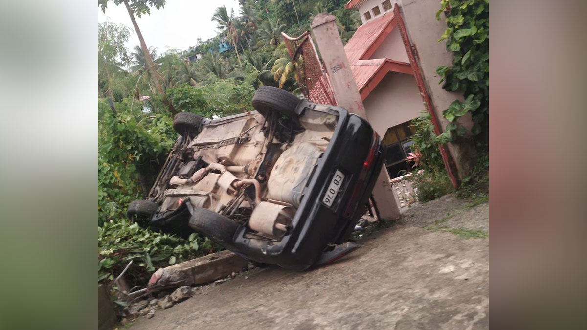 A car has gone off the road and overturned at Milverton Road in Suva.