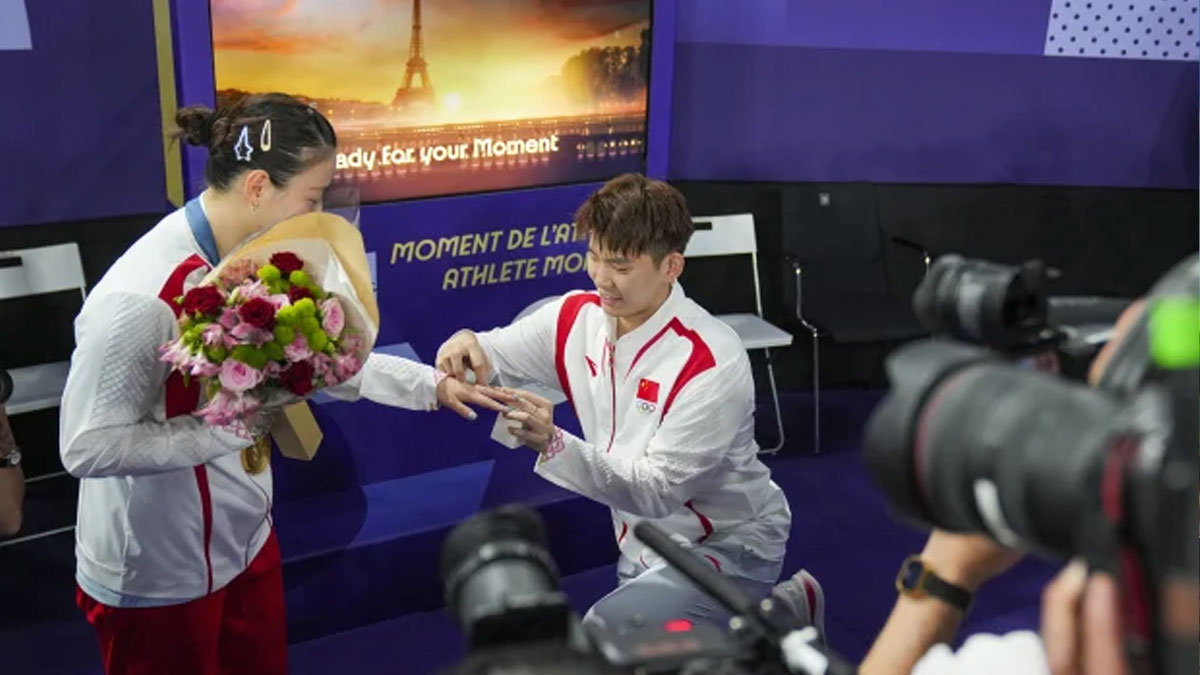 Wearing the gold medal hung around her neck, she said yes to a wedding proposal by Li Yuchen, another member of China's badminton team.