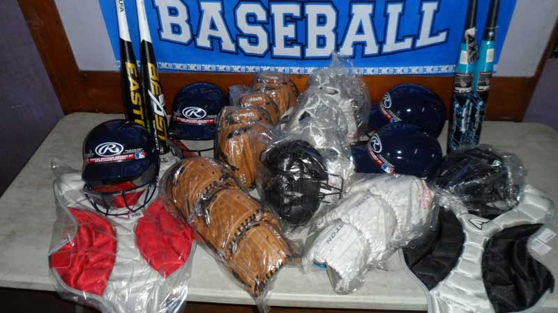 The donation consists of 135 gloves, 24 softball bats, 30 baseball bats, 24 helmets, 12 sets catcher gear and 18 gear bags.