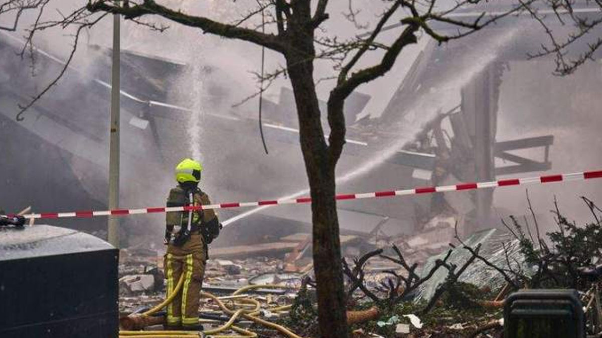 Authorities say firefighters rushed to the three-storey building following the blasts that caused the collapse of several homes yesterday.