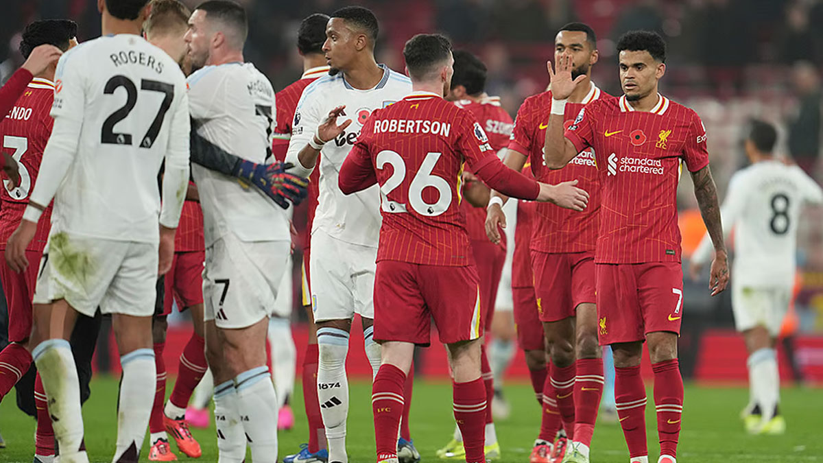 Liverpool held onto their position at the top of the Premier League after a 2-2 draw against Aston Villa at Villa Park this morning.