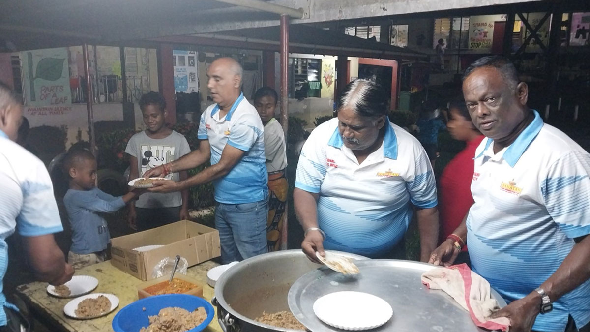 More then 100 evacuees sheltered at the Andrew's Primary School in Nadi were provided with hot cooked food prepared by the National Executive council members of Shree Sanatan Dharm Pratinidhi Sabha of Fiji together with its sports wing members.