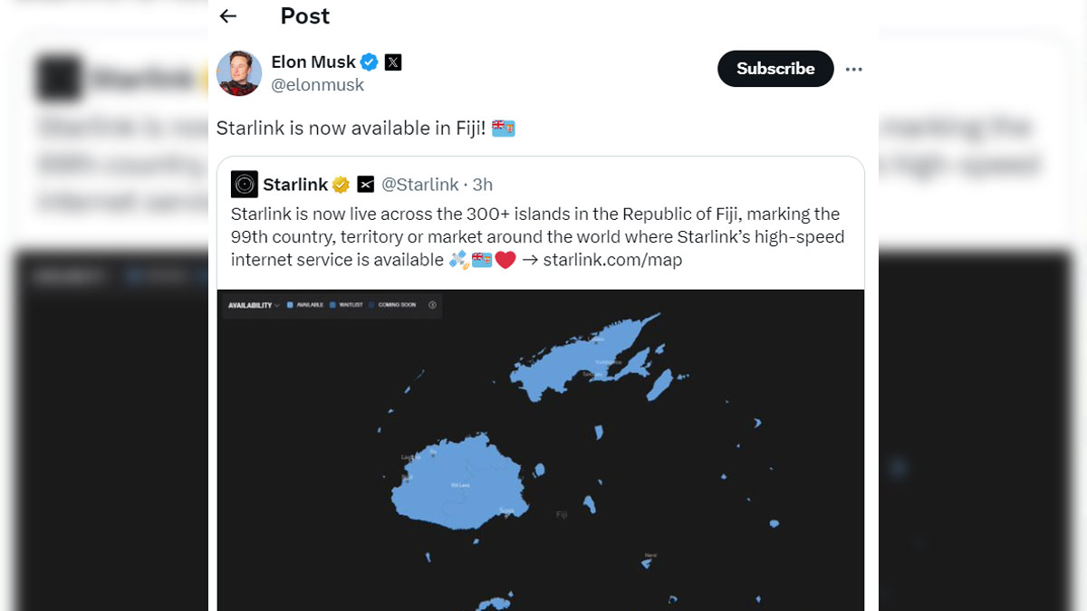 Elon Musk’s SpaceX’s Starlink has expanded to the 300+ islands in Fiji from today.