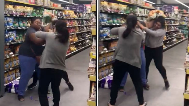 A Sydney shopper has filmed a physical altercation between three women at a Woolworths store in Chullora, Australia in an apparent feud over toilet paper.