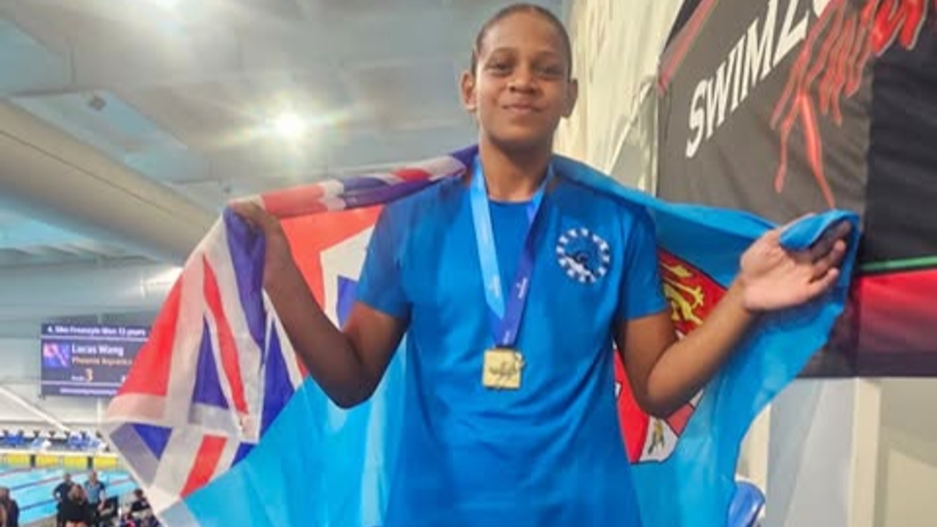 14-year-old Grace Khelan has won gold in the 50 metres freestyle for her age group at the New Zeala...