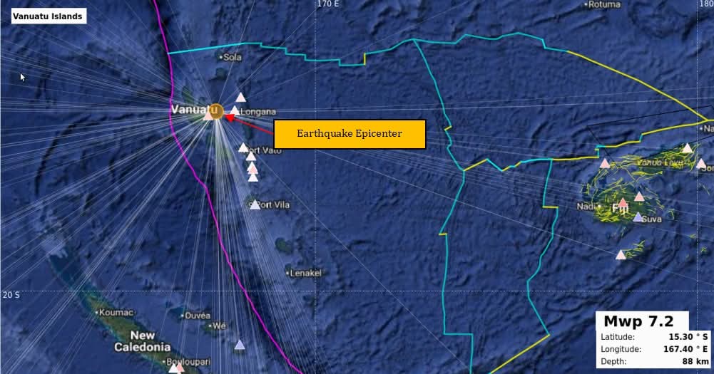 A 7.2 magnitude earthquake occurred 31 kilometres North East from Luganville, Vanuatu at about 8.44p