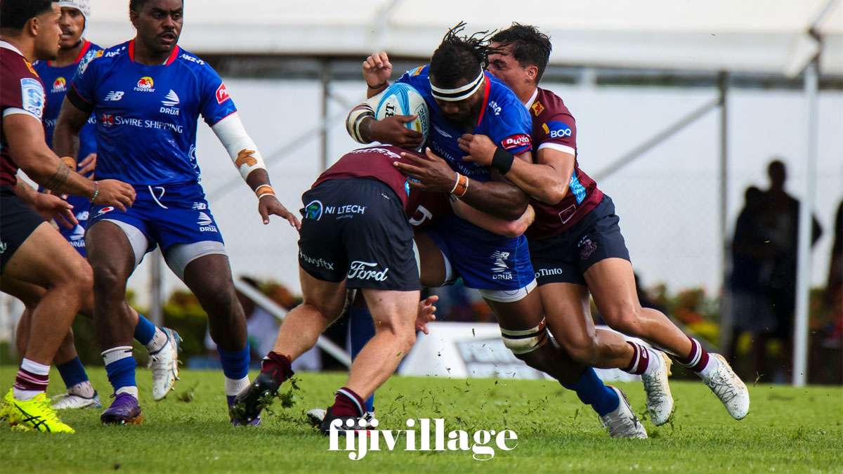 Reds kicks offPenalty on Daugunu Lineout 6 metres from halfway for DruaLineout throw for Drua, Lomani kicks it into thoe air, Campbel with his first touchThomas gets the