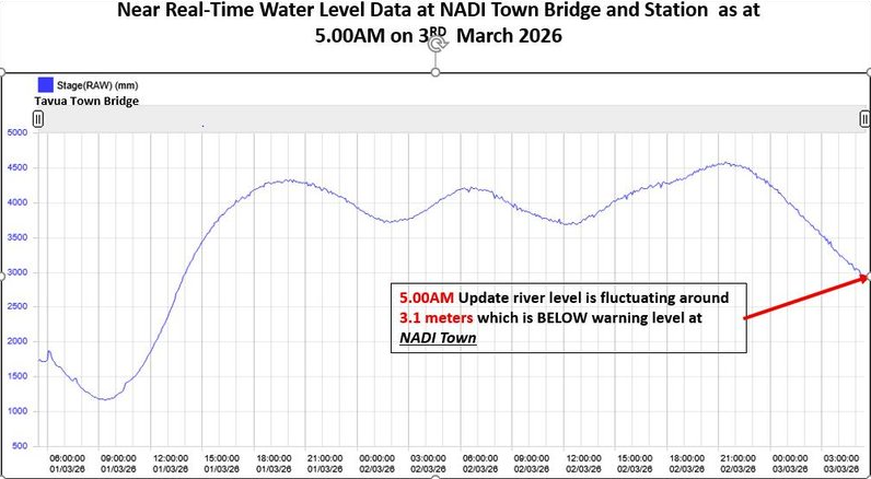 A Flood Warning remains in force for all low-lying, flood-prone areas adjacent to and downstream of the Nakauvadra River to Rakiraki Town, Naseyani ...