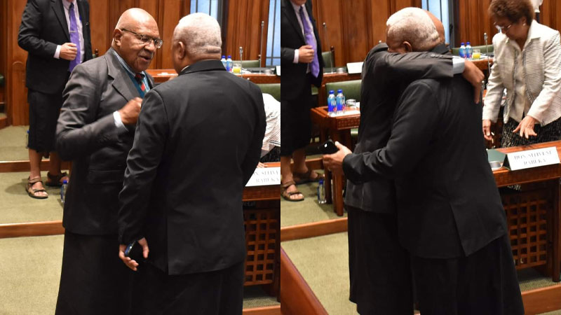 Prime Minister, Voreqe Bainimarama walked across to the Opposition Leader, Sitiveni Rabuka and shook his hand after Rabuka’s resignation from parliament.