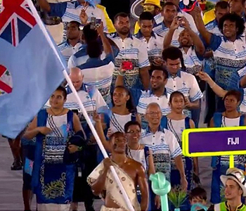 As the Team Fiji flag bearer, Fiji men’s 7s captain Osea Kolinisau was dressed in a traditional attire and led Team Fiji inside a colourful Maracana stadium.