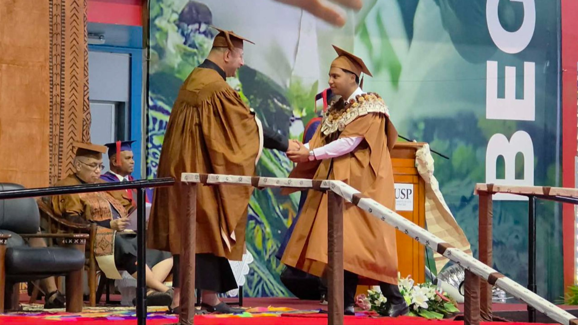 21-year-old Marcus Jemarl Narayan who graduated today with a Bachelor of Commerce in Accounting and Finance from The University of the South Pacific (USP), crediting his parents and church community for helping him overcome challenges, and stressing that this marks just the beginning of his academic and professional journey.