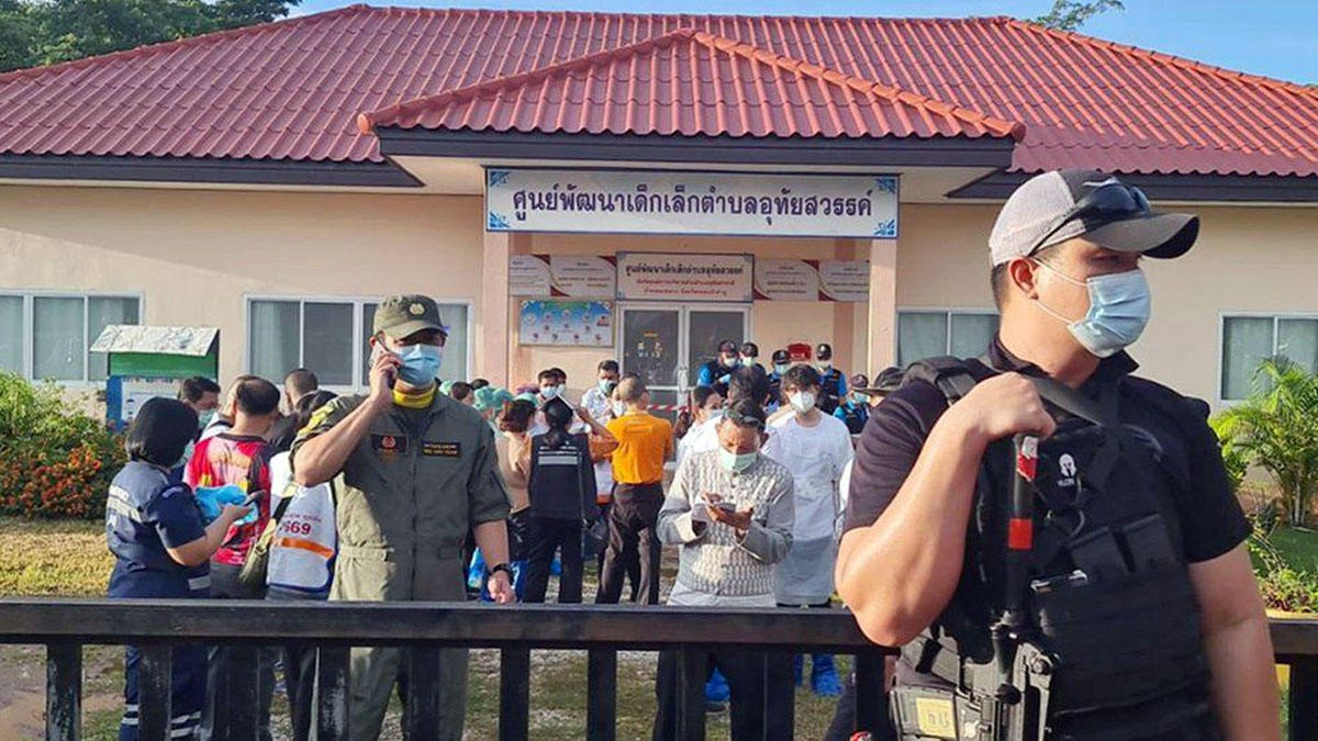 An ex-policeman has killed at least 37 people, most of them children, in a gun and knife attack at a childcare centre in north-east Thailand.