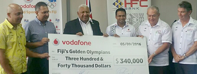The Olympic gold medal winning Fiji 7s team will receive more money as the Vodafone Fiji led consortium of sponsors today handed over a $340,000 bonus cheque to Prime Minister and President of the Fiji Rugby Union Voreqe Bainimarama.