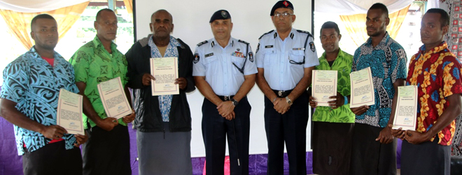 Six men of Naivicula village in Tailevu were today awarded certificates of commendation by the Commissioner of Police Brigadier General Sitiveni Qiliho for their bravery and help in the arrest of a man who allegedly stole a vehicle last month.