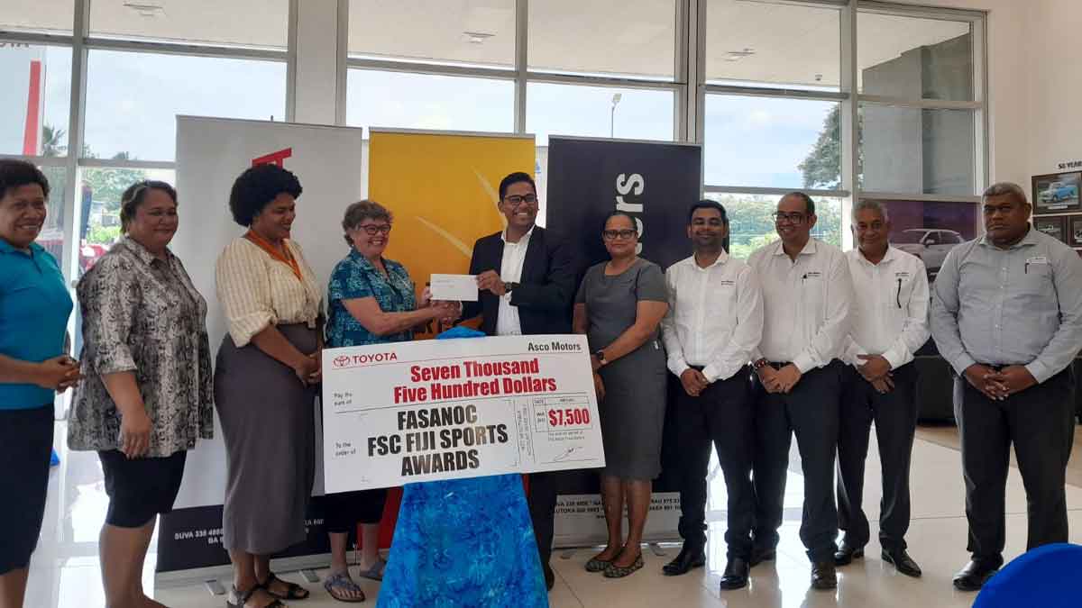 Asco Motors today presented a cheque of $7,500 to the Fiji Sports Committee for their Awards ceremony on the 25th of March.