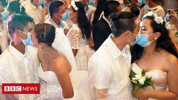 An annual mass wedding ceremony in the Philippines saw face masks and health checks included in the proceedings this year.