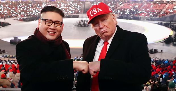 Kim impersonator Howard X and Trump lookalike Russell White were reprimanded after staging a "meeting" in Hanoi.