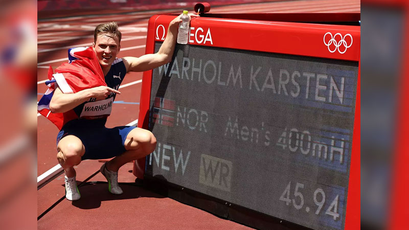 Warholm who is 25-years-old finished in 45.94 seconds to slash more than seven-tenths off his old record.