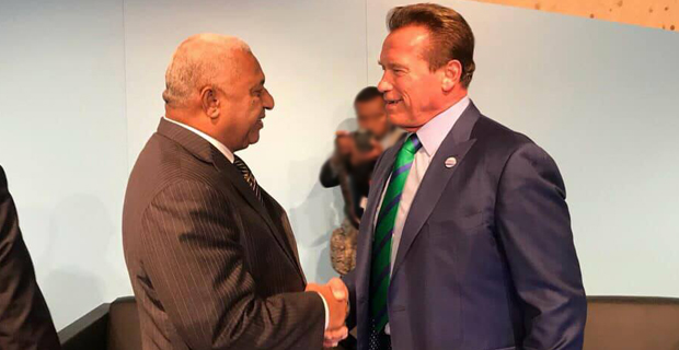 Prime Minister and COP 23 President Voreqe Bainimarama met former California Governor and the Terminator Arnold Schwarzenegger in Bonn, Germany yesterday.