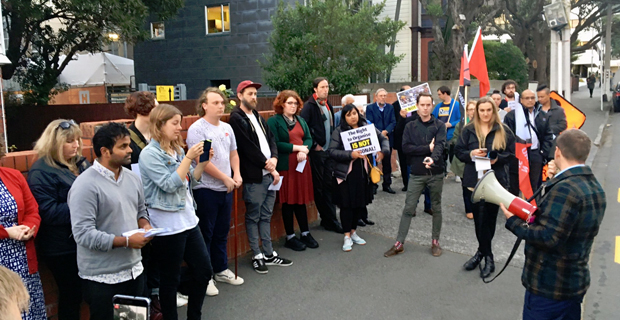 Thirty protesters picketed outside the Fiji High Commission in Wellington [Photo: RadioNZ]