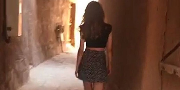 A young Saudi woman has been arrested after she posted a video online of herself in a miniskirt and crop top walking around in public.