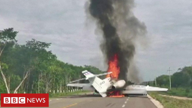 A jet aircraft suspected of carrying illegal drugs has been destroyed by fire after landing on a highway in southern Mexico.