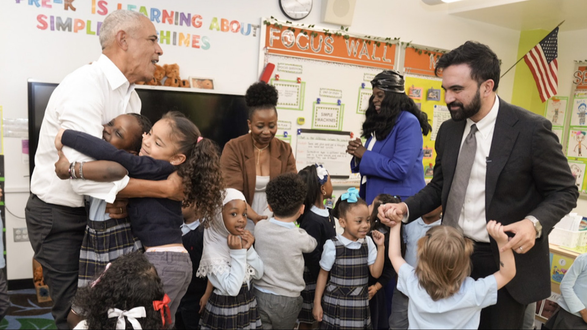 Former President Barack Obama and New York City Mayor Zohran Mamdani met for the first time on Saturday to read and sing with children at a Bronx childcare centre, and to