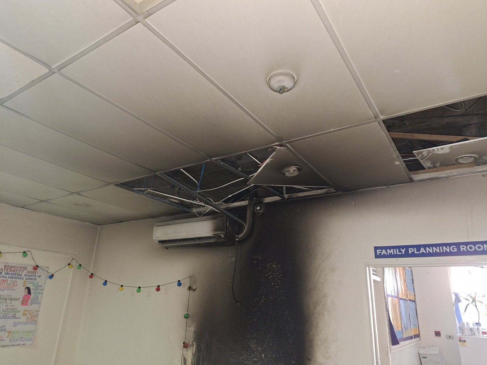 An electrical fire occurred in one of the rooms of the Maternity Unit's Ante-Natal Care Department at the CWM Hospital.