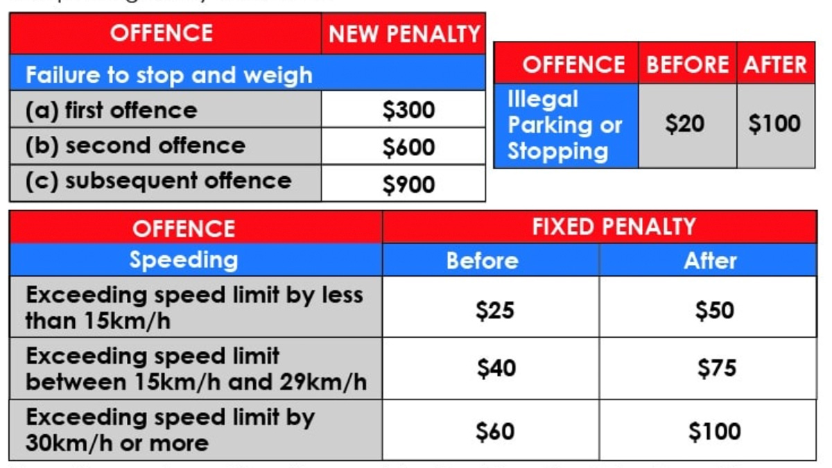 They add that illegal parking or stopping will now attract a $100 fine, up from the previous $20.