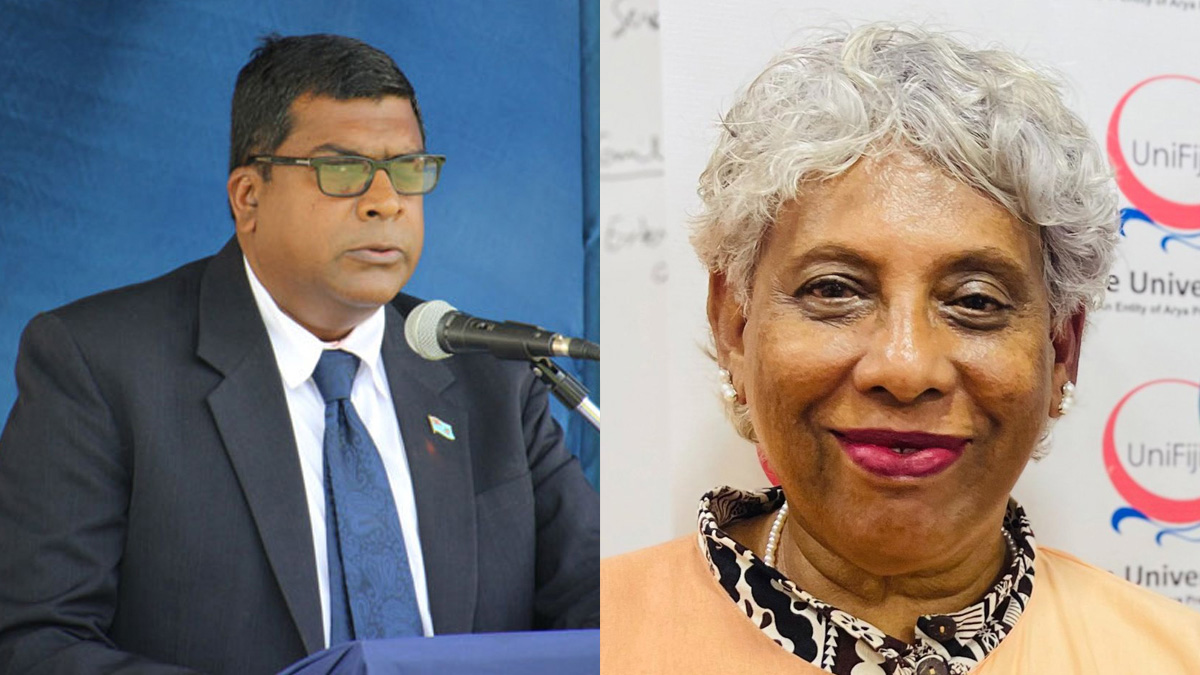 Former FijiFirst Minister Dr Mahendra Reddy and the Vice Chancellor of the University of Fiji Professor Shaista Shameem