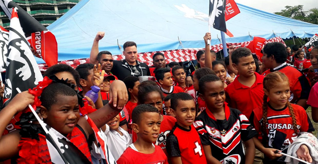 The Crusaders Rugby team today visited students of Holy Trinity Anglican School.
