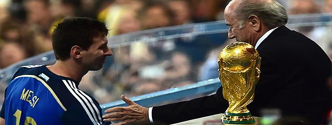FIFA President Sepp Blatter is surprised that Argentina's Lionel Messi has won the World Cup Golden Ball award.