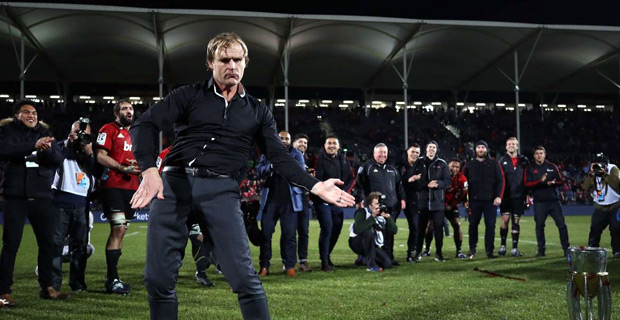 Crusaders coach Scott Robertson celebrated his side's 2019 Super Rugby title the only way he knows how, break‑dancing on the field of Christchurch's Orangetheory Stadium.