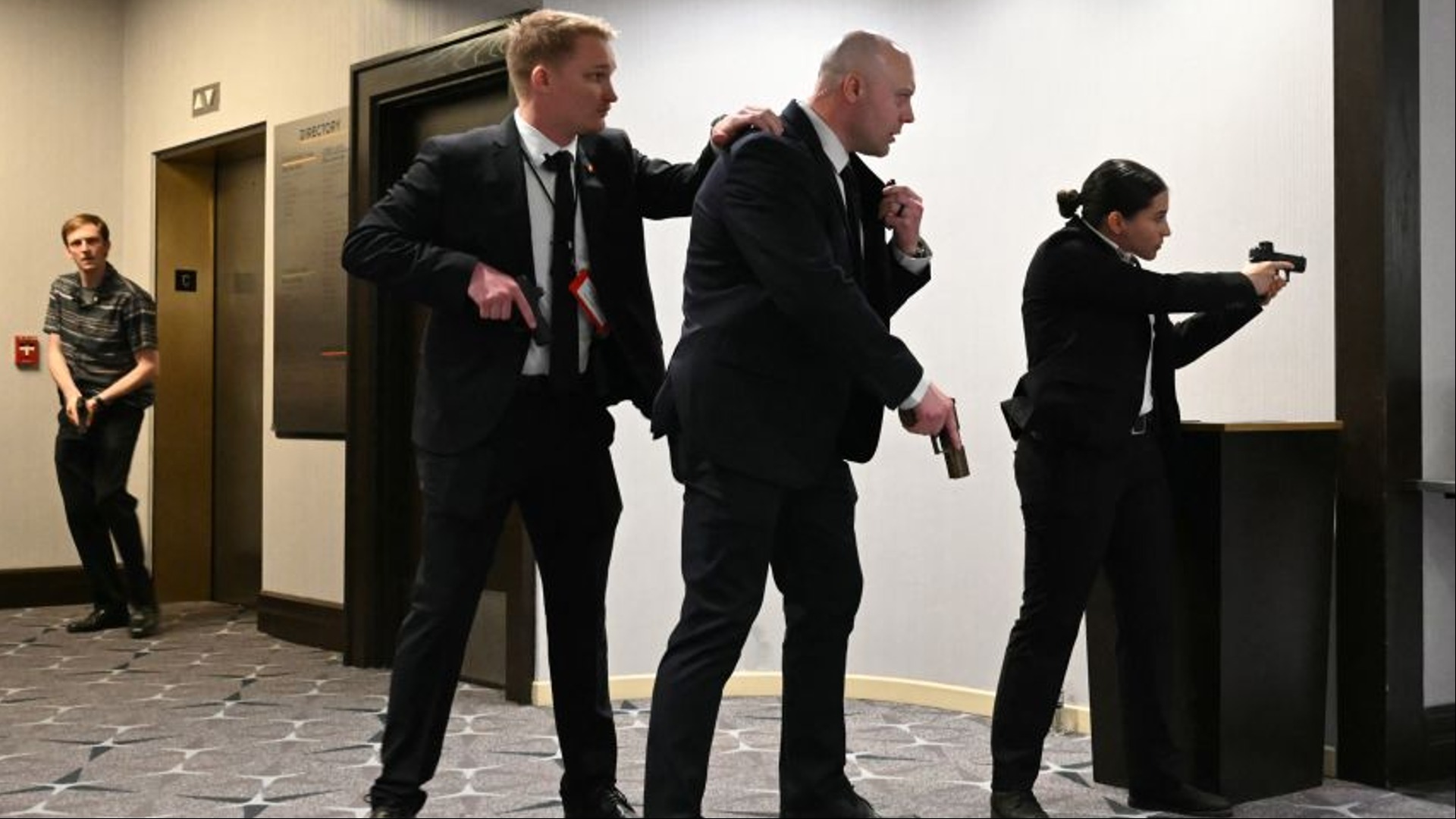 US President Donald Trump was swiftly escorted off stage by Secret Service after a suspected gunman ...